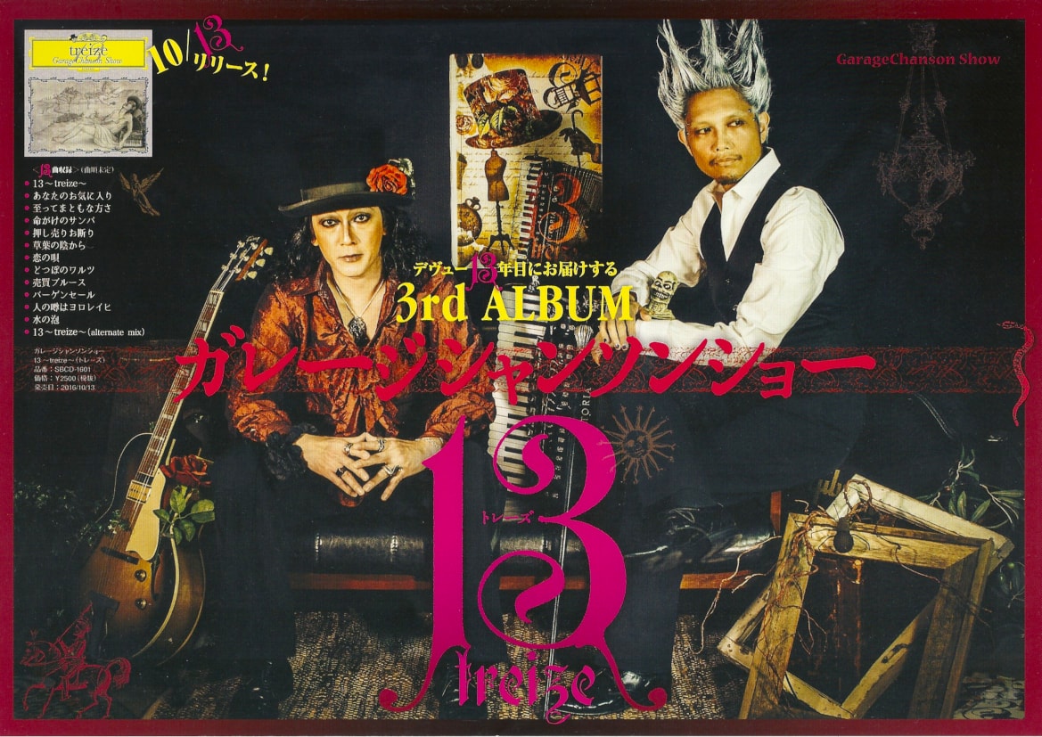 【ガレージシャンソンショー】という名の由来は、そんな二人の欧州文化に憧れつつもそれを悟られぬ様に皮肉ってしまう、といったややひねくれた天の邪鬼的性質の表れである。実のところは、本物のシャンソニエの方々にお叱りを受けやしないかビクビクしている毎日。いや、お叱りを受けたいのかもしれない。